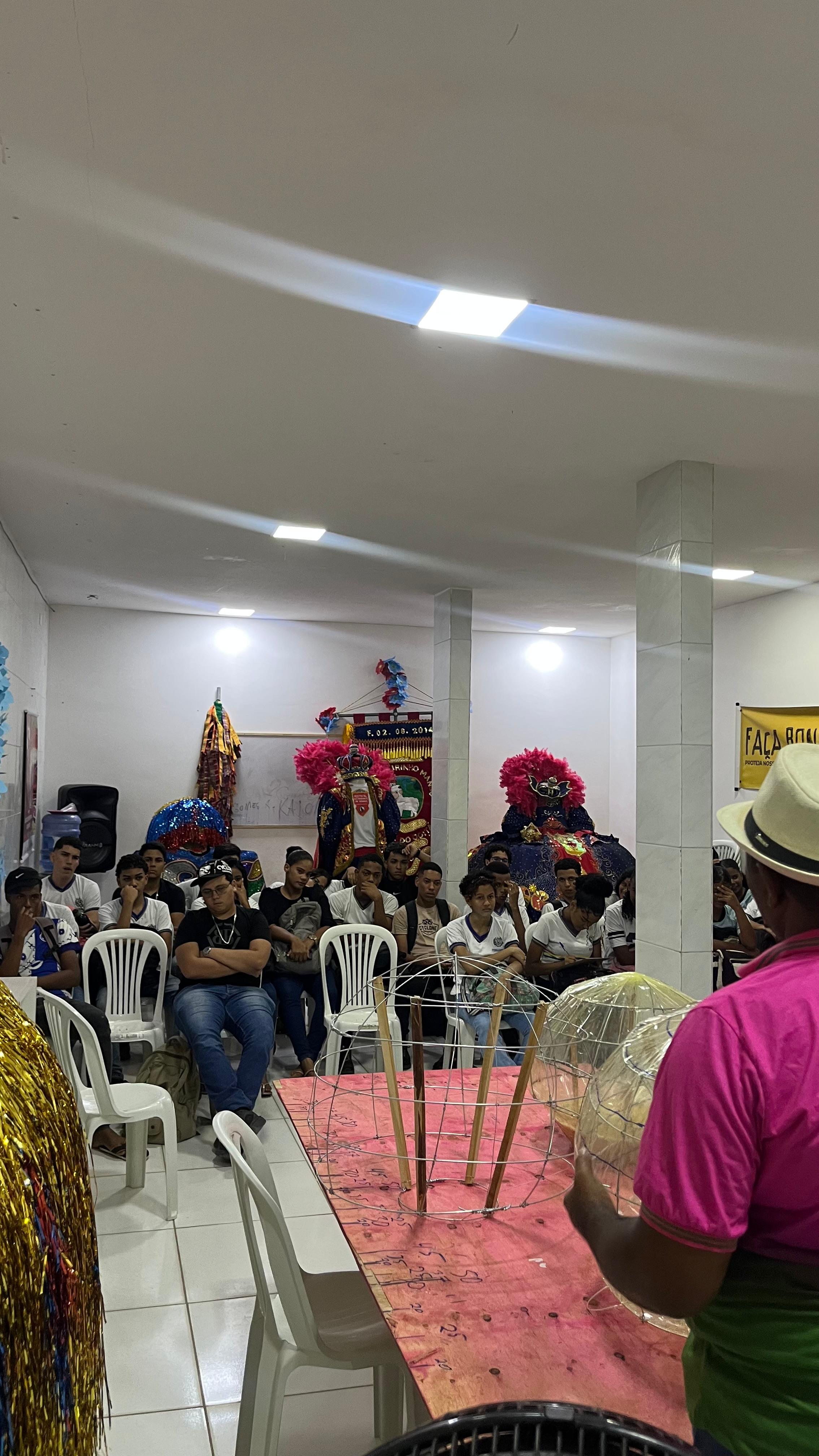 Durante a ação, são compartilhados saberes tradicionais relacionados aos processos de criação e desenvolvimento dos artefatos utilizados pelos personagens do maracatu, como funis, golas, acessórios das baianas, vestidos e diversos outros adereços e apetrechos que compõem a estética e a identidade do brinquedo.